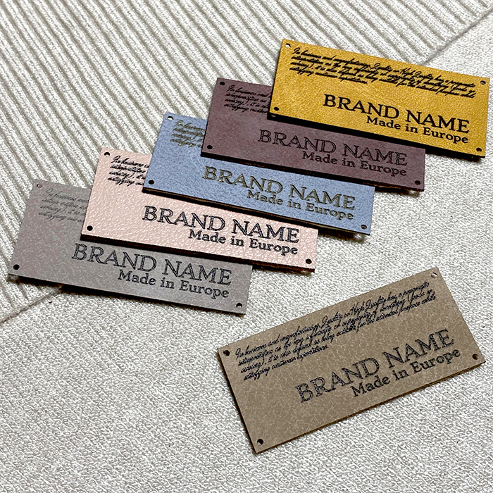 Personalized label EP-M110 made of artificial leather for clothes, bags, shoes and various clothing accessories.