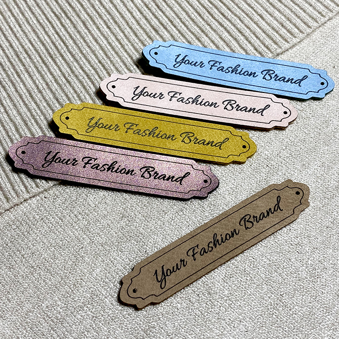 Personalized label EP-M116 made of artificial leather for clothes, bags, shoes and various clothing accessories.