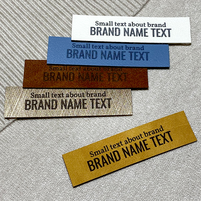 This Faux leather label Model EP-M135 can be customized just in a few seconds, very simply and quickly using the graphic builder, where you can choose the color of the faux leather, you can insert your own logo or any other graphics with a complex design, and you can customize the label with your own text, for example your brand name, a slogan, manufacturer's name, and the country where your product was manufactured.
