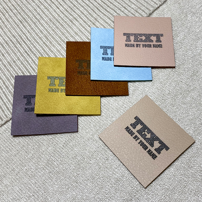 This Faux leather label Model EP-M145 can be customized just in a few seconds, very simply and quickly using the graphic builder, where you can choose the color of the faux leather, you can insert your own logo or any other graphics with a complex design, and you can customize the label with your own text, for example your brand name, a slogan, manufacturer's name, and the country where your product was manufactured.