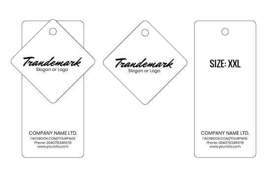 On this page, you have the opportunity to effortlessly customize Hang tag Model HT-M94, thanks to our interactive graphic builder. Here, you can add your own names and texts while selecting from a variety of fonts - whether inclined, artistic, or standard. You also have the option to upload your personal logo and choose colors that resonate with your vision.
