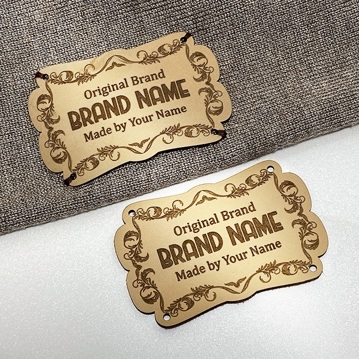 Custom genuine leather label, laser engraved and cut according to the dimensions shown.