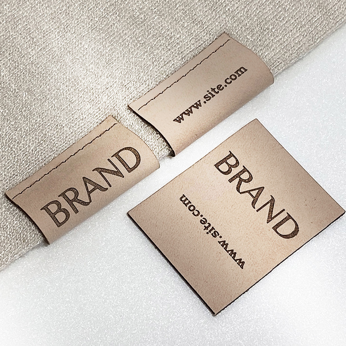Personalized label EP-M47 made of genuine leather for clothes, bags, shoes and various clothing accessories.