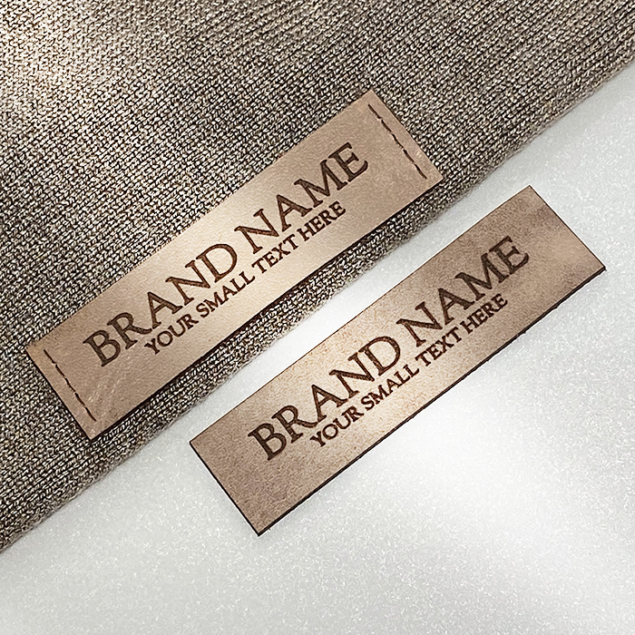 Custom natural leather label model EP-M55 for clothes, bags and other clothing accessories, personalized by laser engraving with the brand name. This leather label model is made of high-quality genuine leather, using the latest generation equipment and professional laser engraving or embossing methods.