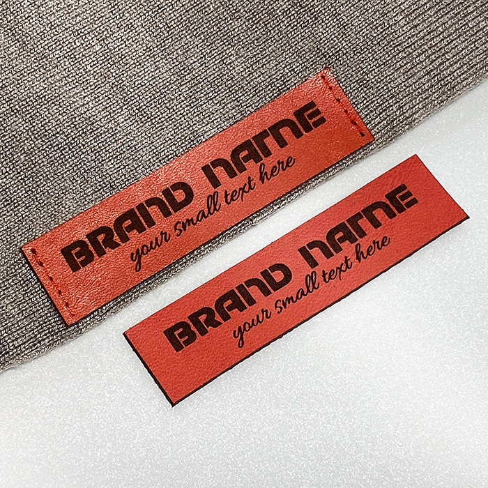 Natural leather label with brand’s name or logo model EP-M57, personalized by laser engraving, suitable for hoodies, jackets, sweaters, hats, scarves, bags and many others. This leather label model is made of high-quality genuine leather, using the latest generation equipment and professional laser engraving or embossing methods.
