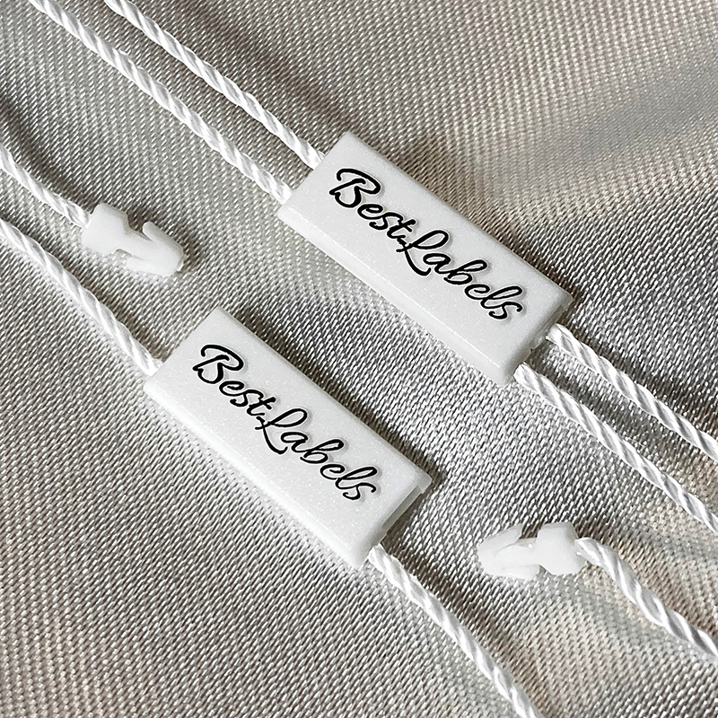 Custom plastic seal tag ST-M124 for fashion products, such as clothes, footwear, bags, jewelry, clothing accessories, etc.