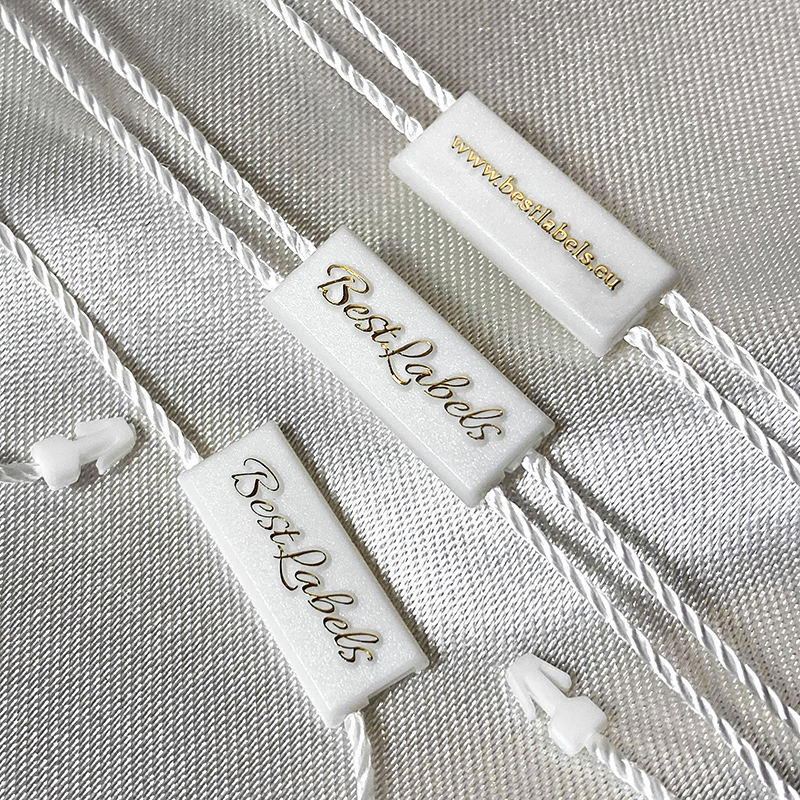 Custom plastic seal tag ST-M132 for fashion products, such as clothes, footwear, bags, jewelry, clothing accessories, etc.