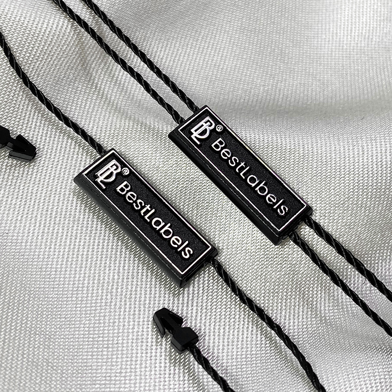 Custom plastic seal tag ST-M141 for fashion products, such as clothes, footwear, bags, jewelry, clothing accessories, etc.