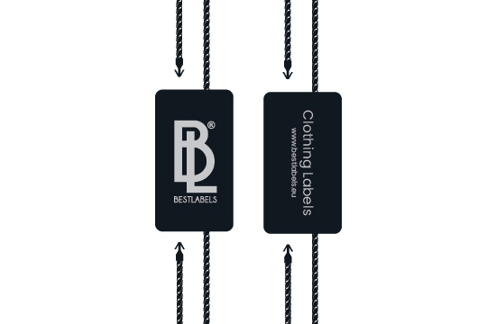 Plastic seal ST-M191 with a simple rectangular shape, customized with a text, Brand name, mark, website, etc., and a logo/emblem, suitable for any type of product in the textile field, clothing, footwear, bags. This type of seal is made of high quality materials, using the most advanced technologies in the field.