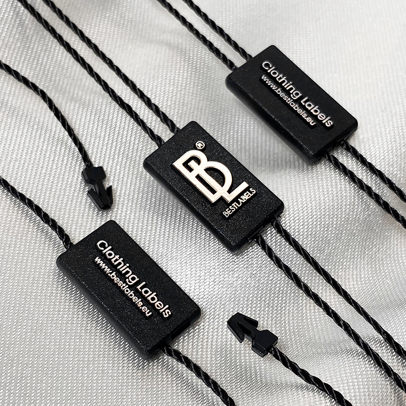 Custom plastic seal tag ST-M191 for fashion products, such as clothes, footwear, bags, jewelry, clothing accessories, etc.