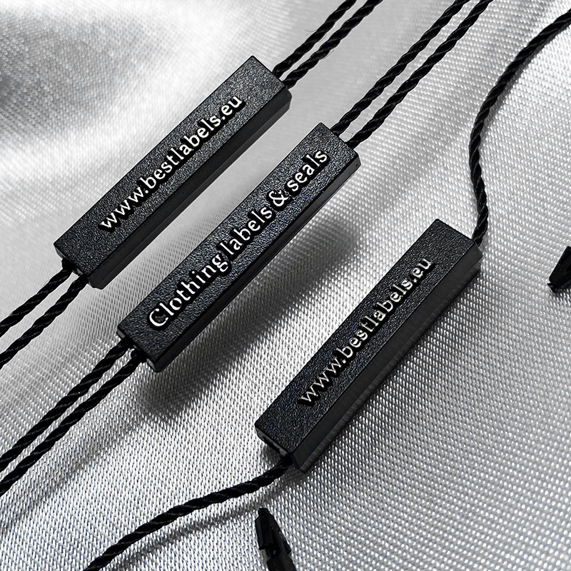Custom plastic seal tag ST-M201 for fashion products, such as clothes, footwear, bags, jewelry, clothing accessories, etc.