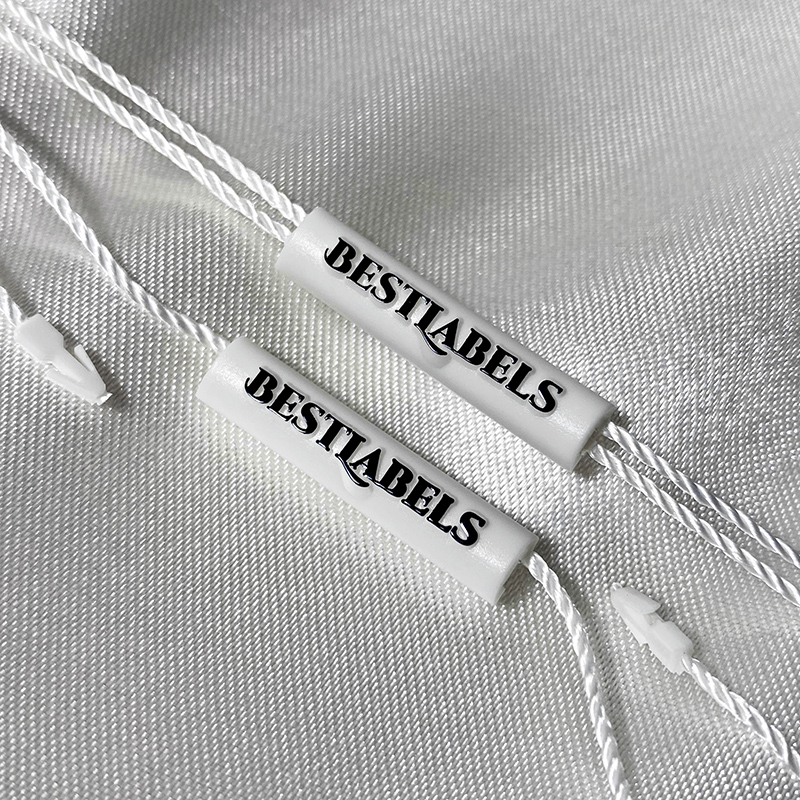 Custom plastic seal tag ST-M238 for fashion products, such as clothes, footwear, bags, jewelry, clothing accessories, etc.