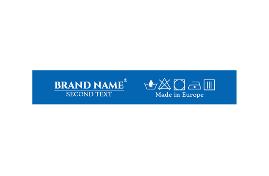 Laundry care label customized with washing symbols, and the Brand name or logo, model TL-82 suitable for any textile product, especially clothing items. This category of textile label utilizes cutting-edge technologies in digital printing on a fabric substrate. The labels are produced on specialized satin through a thermal transfer process, resulting in remarkable print quality.