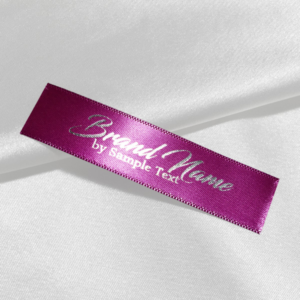Custom label TL-M12 printed on satin fabric suitable for clothing, clothes accessories, and other textile products.