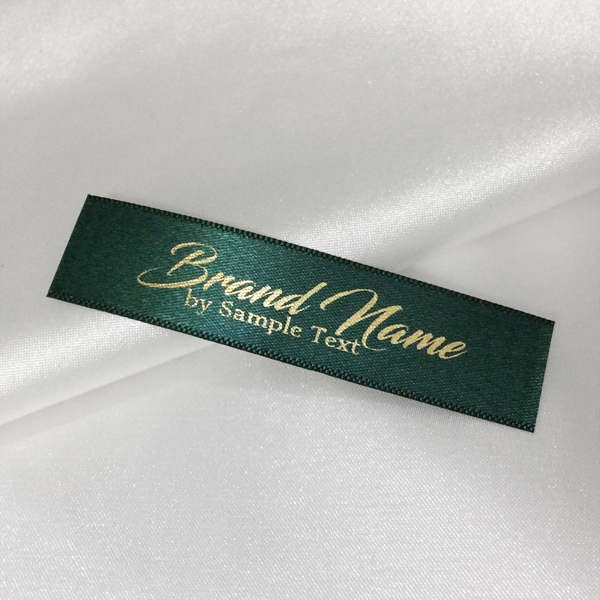 Custom label TL-M86 printed on satin fabric suitable for clothing, clothes accessories, and other textile products.