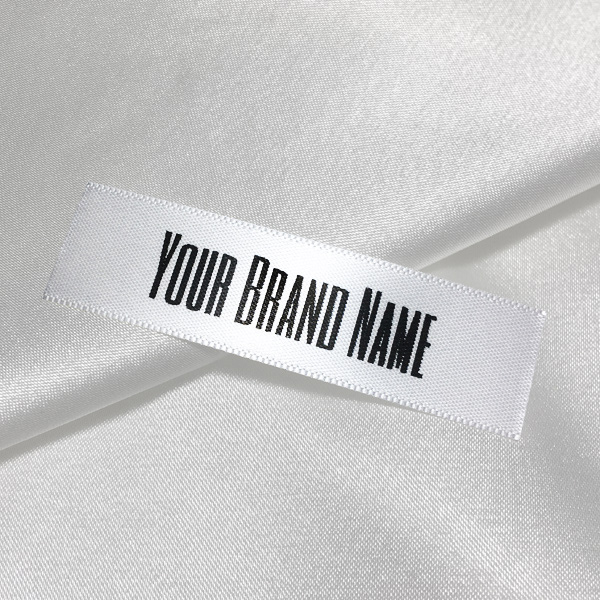 Custom label TL-M109 printed on satin fabric suitable for clothing, clothes accessories, and other textile products.