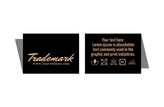 Product label model Smart Style folded in the middle, custom embroidered with various texts of composition, maintenance and manufacturer's name, suitable for clothing and various textile products. This type of woven label is made of high quality materials, using the most advanced technologies from Digital embroidery field at industrial level.